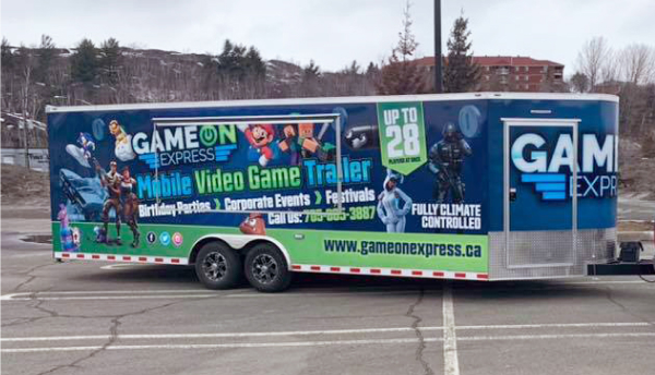 Game on Express Featuring our mobile video game trailers that can host up to 28 players at once, Game On Express is perfect for birthday parties, festivals, events, corporate functions and much more! Our portable trailer allows us to travel anywhere in Northern Ontario, delivering the best and the most interactive experience right to your doorstep or event!